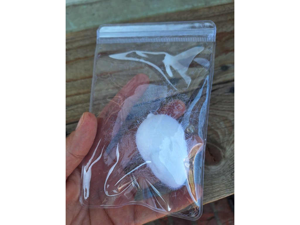 Squishy myška, bílá s chloupkama.