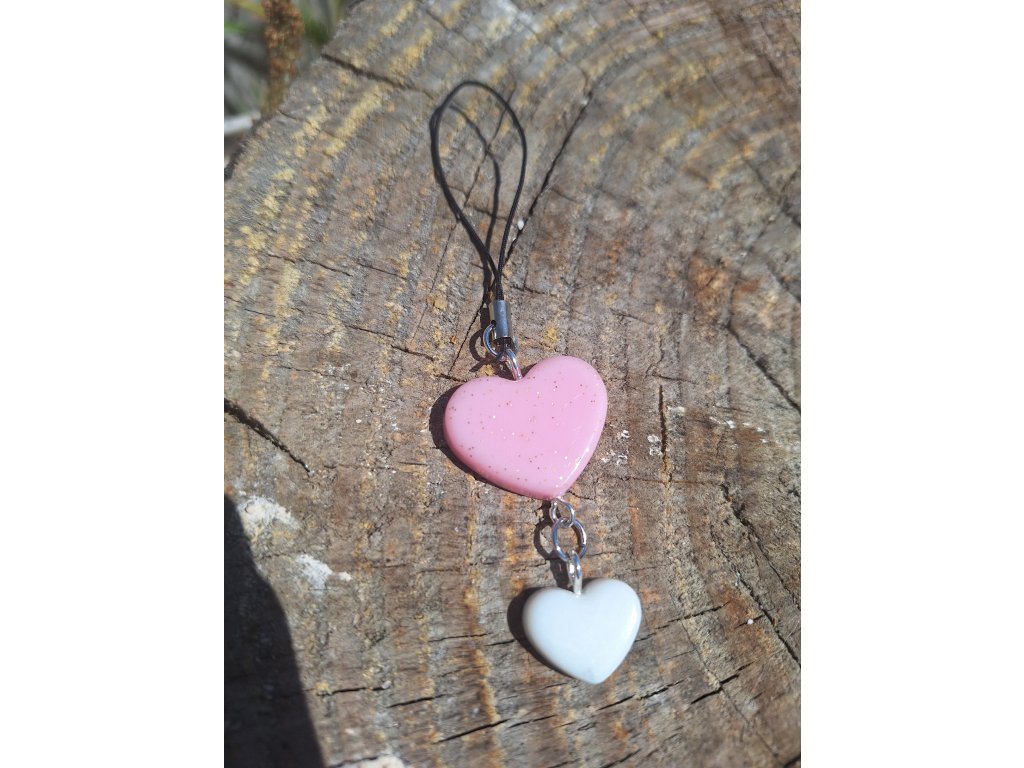 Přívěsek na mobil srdíčka.